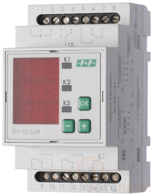 Реле времени RV-03-1/24 4х8А 24В AC/DC 4NO/NC IP20 многофункц. 3-х канал. 9 режимов работы с входами START диапазон выдержки времени 0с-99ч 59мин; 3мод. монтаж на DIN-рейке F&F EA02.001.029