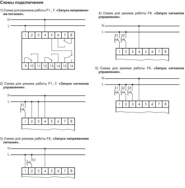 Реле времени серии "RV" Монтаж на DIN-рейку. Предназначенодля коммутации электрических цепей (до 3-х независимых цепей К1, К2, К3) с предварительно установленными выдержками времени t1, t2 и t3 для применения в схемах автоматики. Режимы работы Режим F1.1...F1.3 - «Формирование импульса по К1. Задержка включения нагрузки по К2 и К3»; Режим F2.1...F2.3 - «Формирование импульса по К1. Задержка выключения нагрузки по К2 и К3»; Режим F3.1...F3.3 - «Формирование импульса по К1. Задержка включения по К2. Задержка выключения по К3»; РежимF4.1...F4.3 - «Задержка включения по К1...К3»; Режим F5.1...F5.3 - «Задержка выключения по К1...К3»; Режим F6.1...F6.3 - «Групповая циклическая работа по К1...К3»; Режим F7.1...F7.3 - «Циклическое последовательное включение трёх нагрузок»; Режим F8.1...F8.3 - «Циклическое последовательное включение двух нагрузок по К2, К3»; Режим F9.1...F9.3 - «Трёхканальное реле с независимым исполнением программ по каждому каналу» Особенности: трехканальное; цифровая индикация; 9 режимов работы; по три ячейки памяти для каждого режима; контакт мгновенного действия; напряжение питания 100...264 В AC/DC; диапазон выдержки времени 0 с... 99 ч 59 мин ; контакт - 4NO/NC (4х8 А).