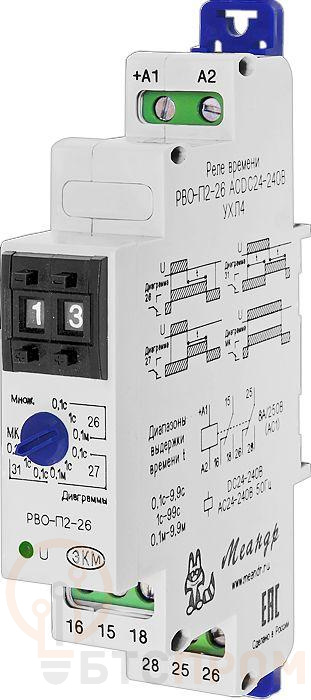 Реле времени РВО-П2-26 ACDC24-240B УХЛ4 8А 2п задержка на выключ. после снятия сигнала двойн. декадн. переключ. Меандр A8302-16930722