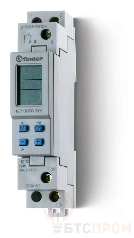 Реле времени цифровое недельное 16А 24В AC/DC 1CO IP20 17.8мм программируется ПК (012.00) монтаж на рейку 35мм FINDER 127100240000