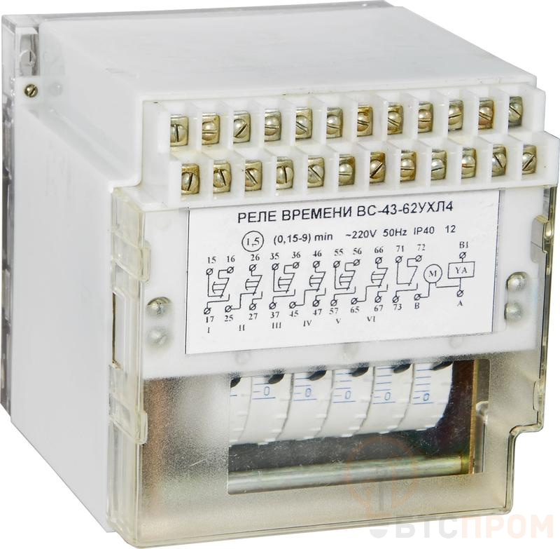 Реле времени ВС-43-6-5 УХЛ4 220В 50Гц 1-60ч 6-цепн. с независ. регул. выдержки времени для каждой цепи задержка на вкл. ток контактов исполн. реле 4А 6перекл. с выдержкой времени+1перекл. мгнов. действия Реле и Автоматика A8011-76914626