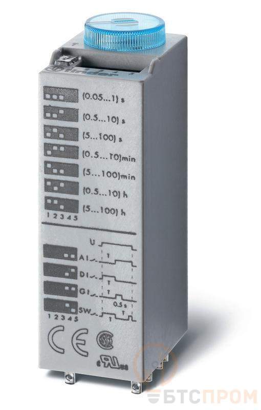 Таймер миниатюрный мультифункциональный (AI DI SW GI) монтаж в розетку 240В AC 2CO 10А регулировка времени 0.05с…100ч IP40 в комплекте металлич. клипса 094.81 FINDER 850282400000