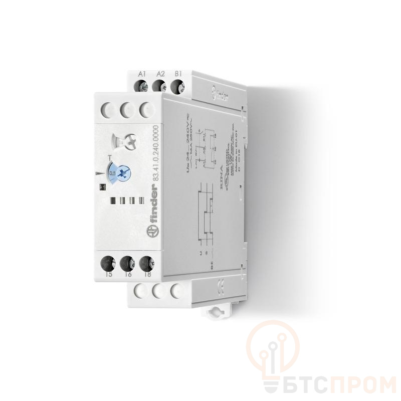 Таймер модульный 1-функциональный (BE) 24-240В AC/DC 1CO 16А 22.5мм регулировка времени 0.05с-10дней IP20 версия для ЖД-транспорта FINDER 834102400000T