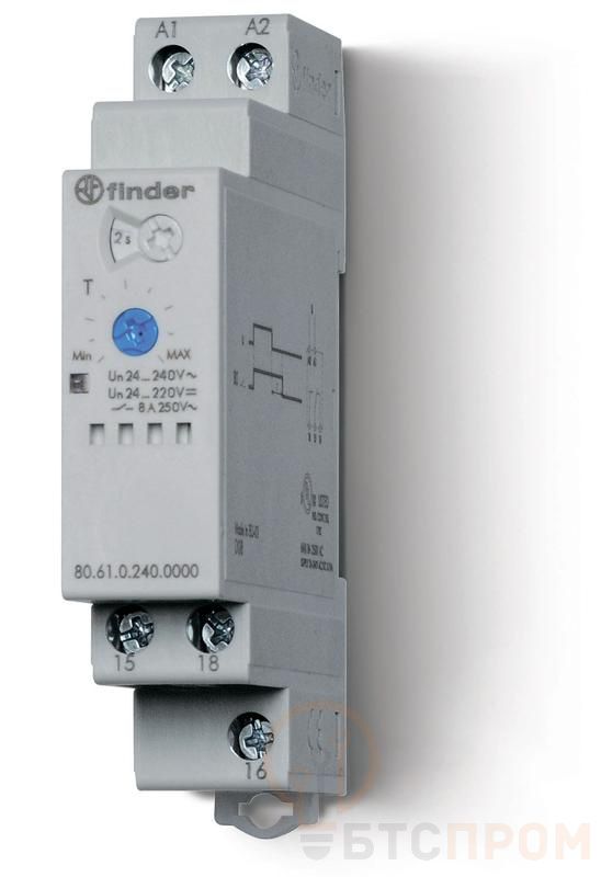 Таймер модульный 1-функциональный (BI) 24…240В AC/DC 1CO 8А 17.5мм регулировка времени 0.05с…180с IP20 FINDER 806102400000