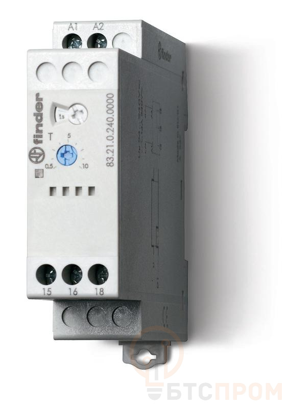 Таймер модульный 1-функциональный (DI) 24…240В AC/DC 1CO 16А 22.5мм регулировка времени 0.05с…10дней IP20 FINDER 832102400000