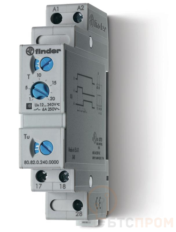 Таймер модульный 1-функциональный (SD) 24…240В AC/DC 2NO 6А 17.5мм регулировка времени 0.1с…20мин IP20 FINDER 808202400000