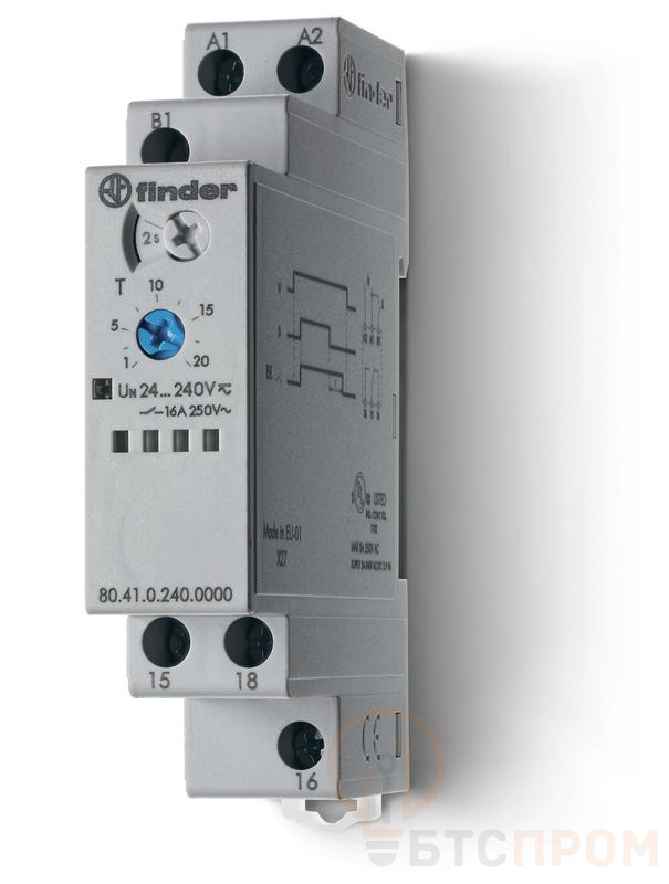 Таймер модульный 1-функциональный (ВЕ) 24…240В AC/DC 1CO 16А 17.5мм 0.1с…24ч IP20 FINDER 804102400000