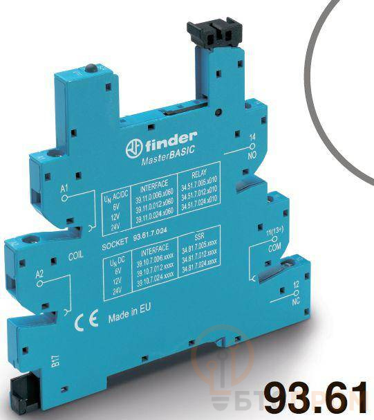 Розетка MasterBASIC с винт. клеммами (с зажимной клетью) для реле 34 серии 24В DC в комплекте пластик. клипса опции: LED FINDER 93617024