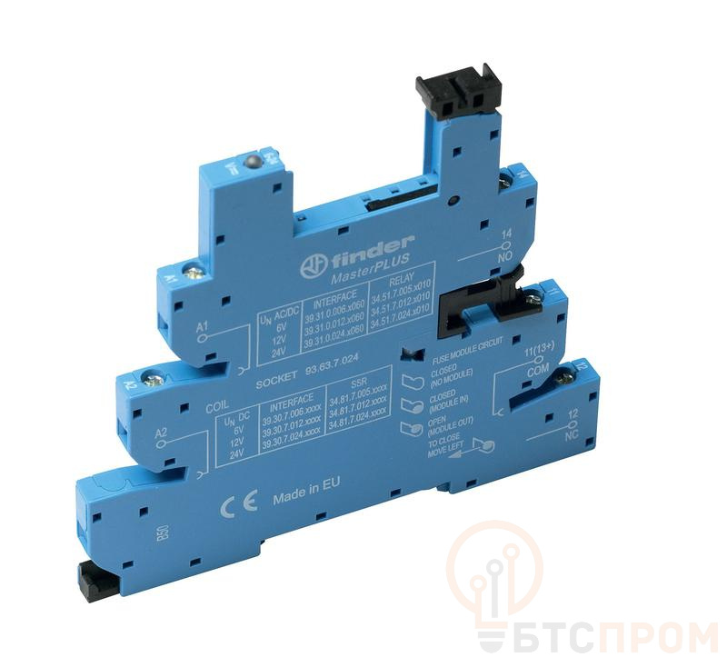 Розетка MasterPLUS с винт. клеммами (с зажимной клетью) для реле 34 серии 220В DC в комплекте пластик. клипса опции: LED FINDER 93637220