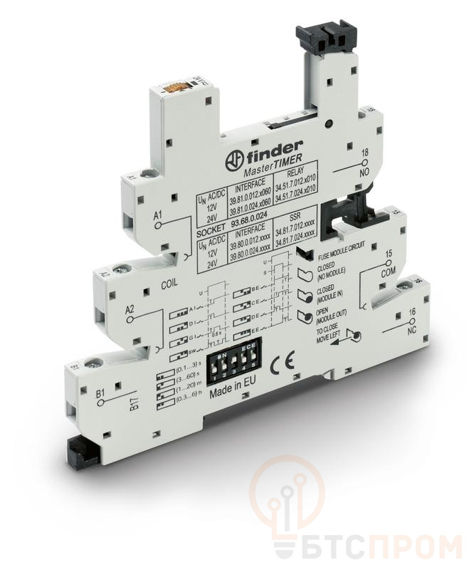 Розетка MasterTimer с винт. клеммами (с зажимной клетью) для реле 34 серии встроенный таймер мультифункц. (AI DI GI SW BE CE DE EE) 0.1с…6ч 24В AC/DC в комплекте пластик. клипса опции: LED FINDER 93680024