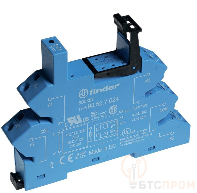Розетка с безвинт. клеммами (пружинный зажим) для реле 41 серии 60В AC/DC в комплекте пластик. клипса опции: LED FINDER 93520060