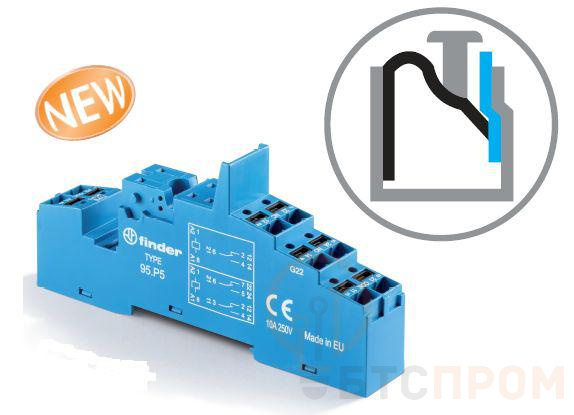 Розетка с безвинт. клеммами Push-in для реле 40.51 40.52 40.61 40.62 модули 99.02 86.03 в комплекте пластик. клипса 095.01 син. FINDER 95P5SPA