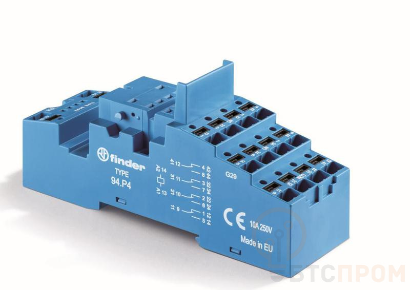 Розетка с безвинт. клеммами Push-in для реле 55.33 таймера 85.03 модули 86.00 99.02 в комплекте металлич. клипса 094.71 син. FINDER 94P3SMA