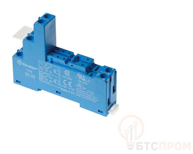 Розетка с винт. клеммами (с зажимной клетью) для реле 40.31 модули 99.02 86.03 в комплекте металлич. клипса 095.71 син. FINDER 9503SMA
