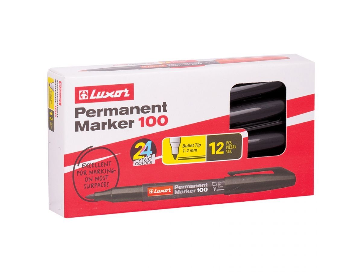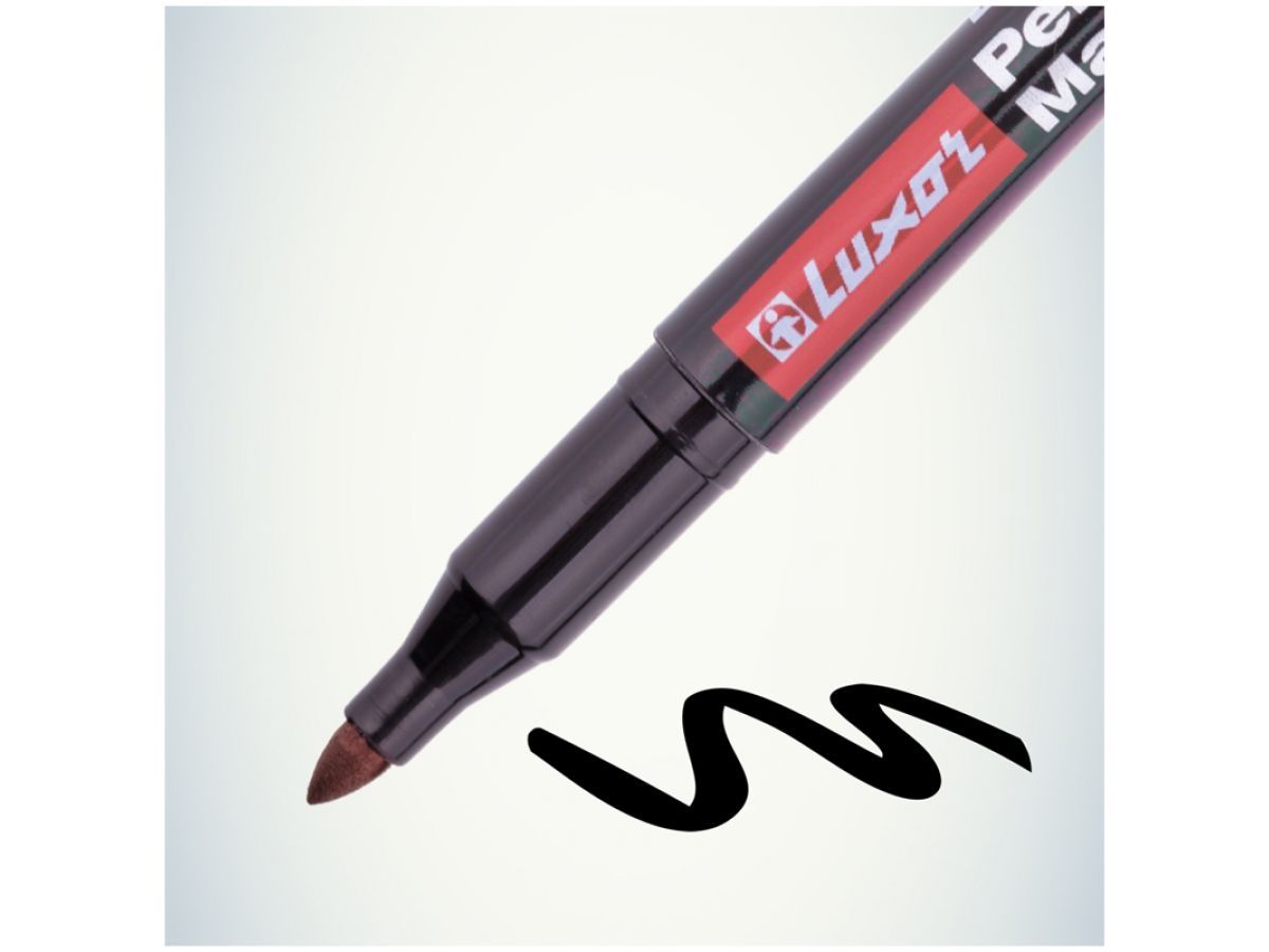 Маркер перманентный фетровый LUXOR 100 черный (LUXOR3411) предназначен для использования на всех типах поверхностей: доска, пластмасса, стекло, керамика, металл. Чернила на спиртовой основе без ксилола и толуола обладают устойчивостью к различным неблагоприятным внешним факторам, таким как влага, солнечный свет, перепад температуры, поэтому чернила быстро высыхают и не стираются. Конусообразная форма наконечника позволяет варьировать толщину линии письма от 1мм до 2 мм.