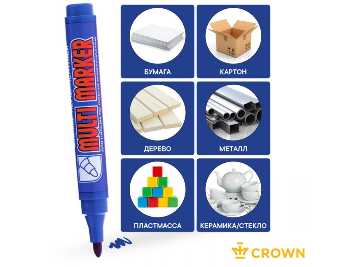 Маркер промышл. перманентный фетровый синий CROWN MULTI MARKER (толщ. линии 3.0 мм. Цвет синий) (CROWN маркеры) CPM-800blue
