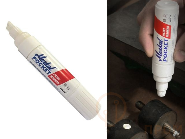 Маркер промышл. перманентный на основе жидк. краски MARKAL POCKET БЕЛЫЙ (Реверсивный наконечник: клин 3/10 мм, круглый 10мм. Цвет белый) 97500