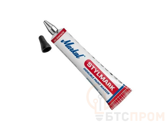 Маркер с металлическим шариковым наконечником Markal Stylmark предназначен для нанесения отметок практически на любые поверхности. Алюминиевый тюбик содержит краску густой консистенции, позволяющую маркировать шероховатые, вертикальные и потолочные поверхности, и