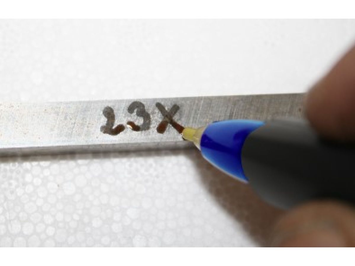 Маркировка травлением оставляет очень точную маркировку, и в отличие от мелков и красок не отслаивается, не смазывается и устойчив к стиранию;