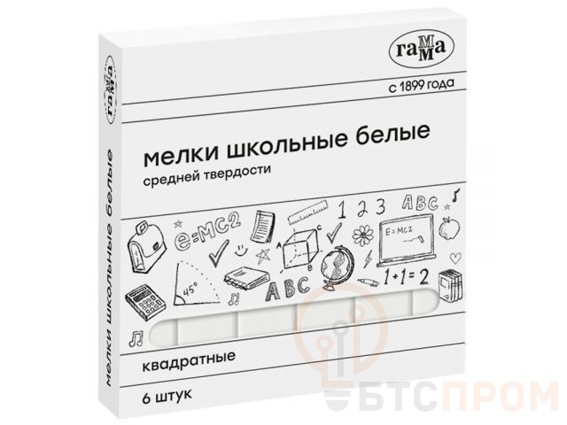 Мел школьный ГАММА белый 6 штук (280120214) средней твёрдости изготовлен из натуральных компонентов, без выраженного запаха. Идеально рисует на шероховатой поверхности. Следы мела легко счищаются с рук. Подходит как для аудиторных занятий, так и для детского творчества на прогулке. Нетоксичные. Для детей старше 3-х лет.