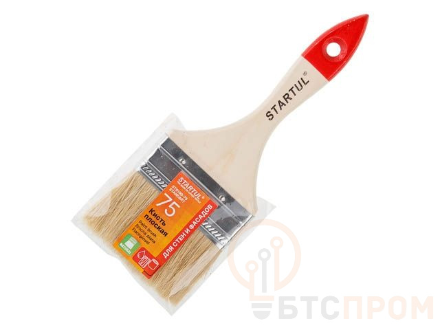 Кисть плоская 3"-75мм STARTUL STANDART+ (покраска стен и фасадов, флейцевая малярная, все типы ЛКМ, удлиненная щетина, утолщенная рукоять) ST0100-75
