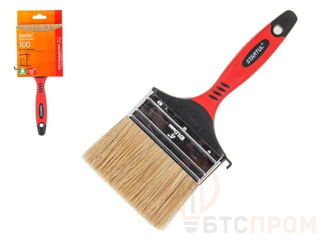 Кисть плоская 4"-100мм натур. щетина (стены, фасады) STARTUL PROFI (покраска стен и фасадов, флейцевая малярная, все типы ЛКМ) ST0114-100