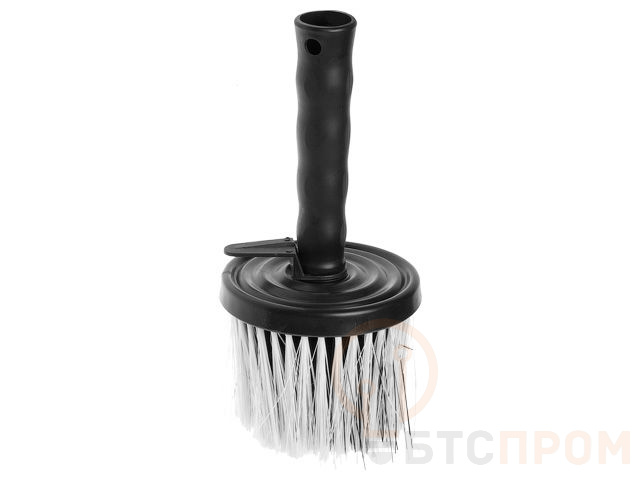 Конструкция: щетина надежно впрессована в пластмассовый корпус круглой формы. Съемная пластмассовая ручка, имеет отверстие для подвешивания, а также специальное приспособление для крепления на емкость;