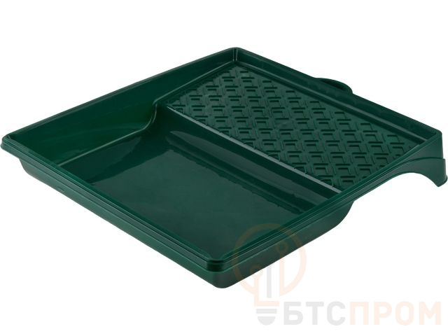 Описание: изделие выполнено из ударопрочного пластика, устойчивого к действию растворителей, позволяет использовать большинство ЛКМ. Конструкция двухуровневая - углубление для краски и рифленая площадка для валика. Изделие оснащено ножками для устойчивости и кронштейном для крепления под крюк;