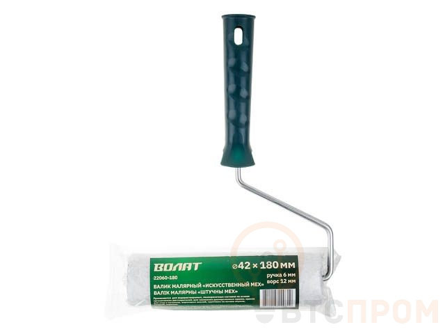 Валик "ИСКУССТВЕННЫЙ МЕХ" 42-180мм с ручкой 6мм ВОЛАТ (Для работы с водоэмульсионными красками, акриловыми эмалями, грунтовками на основе акрил) 22060-180