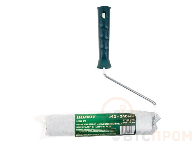 Валик "ИСКУССТВЕННЫЙ МЕХ" 42-240мм с ручкой 6мм ВОЛАТ (Для работы с водоэмульсионными красками, акриловыми эмалями, грунтовками на основе акрила) 22060-240