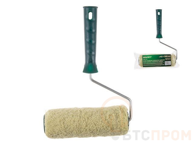 Валик "ПОЛИАКРИЛ ЗЕЛЕНЫЙ" 42-180мм с ручкой 6мм ВОЛАТ (синтекс, для ЛКМ на водной основе, акриловых эмалей и грунтовок на основе) 22080-180
