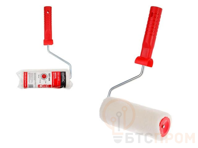 Валик с натуральной шерстью 48-180мм с ручкой 8мм STARTUL PROFI (ворс 12 мм, покраска стен и фасадов, лаки, 100% натуральная шерсть) ST0234-18R