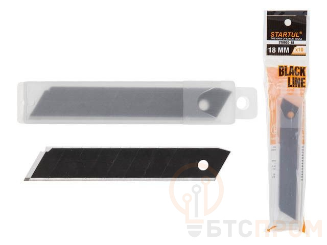 Лезвия сменные сегментированные 18мм 10шт BLACK LINE STARTUL (ST0920-18) (лезвие для ножа - цвет черный 7 сегментов) ST0920-18