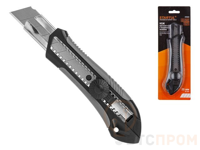 Нож пистолетный с выдвижным лезвием 25мм BLACK LINE STARTUL (ST0926) (ABS+TPR покрытие корпуса) ST0926