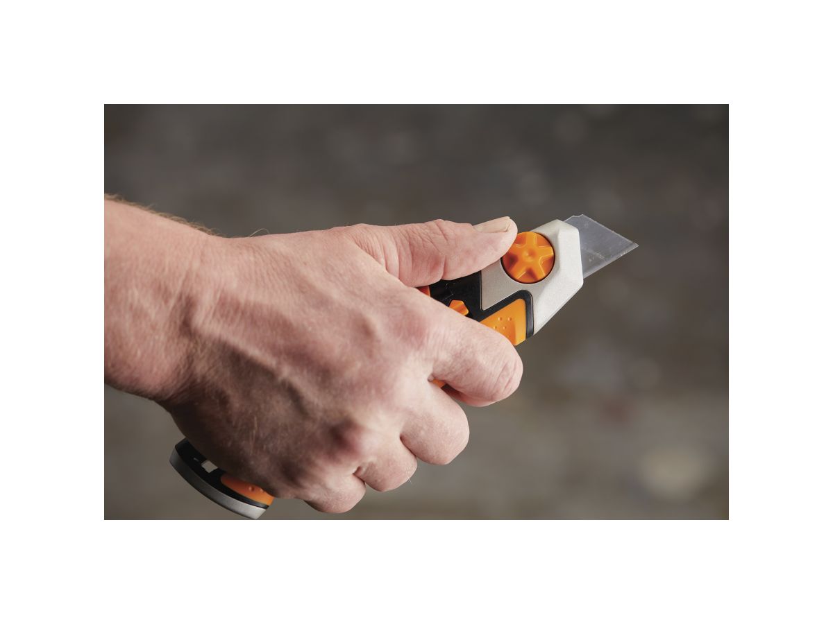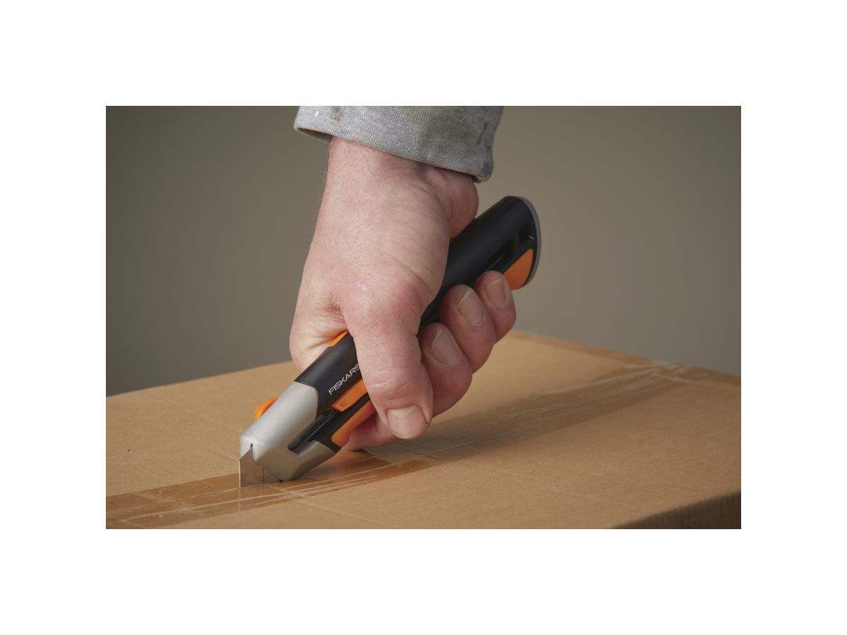 Лезвие зубчатого ножа Fiskars CarbonMaxT заменяется спереди, поэтому вам не нужно беспокоиться о незакрепленных деталях, а замена лезвия выполняется быстро и легко. Встроенный прерыватель лезвий безопасно обрезает лезвие и хранит использованные лезвия, чтобы они не представляли опасности во время работы.