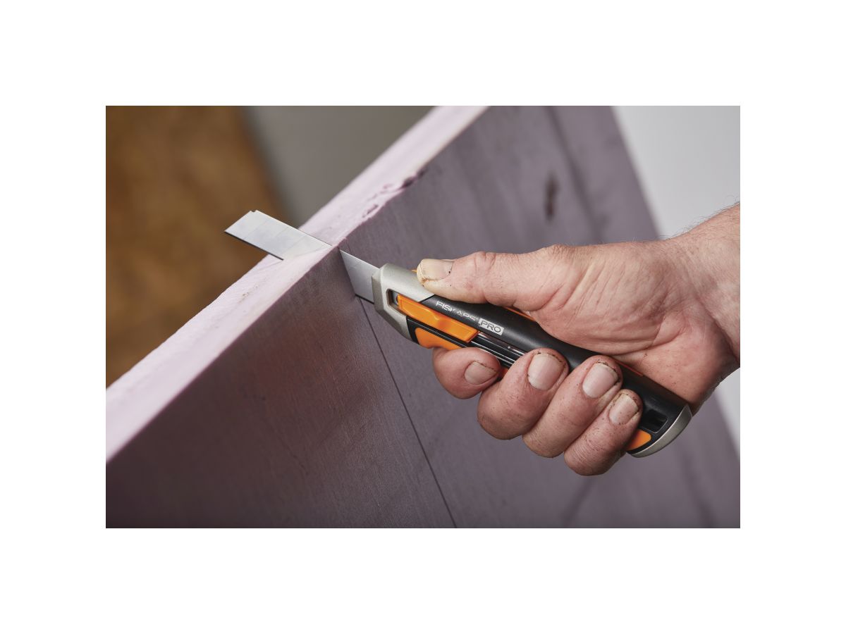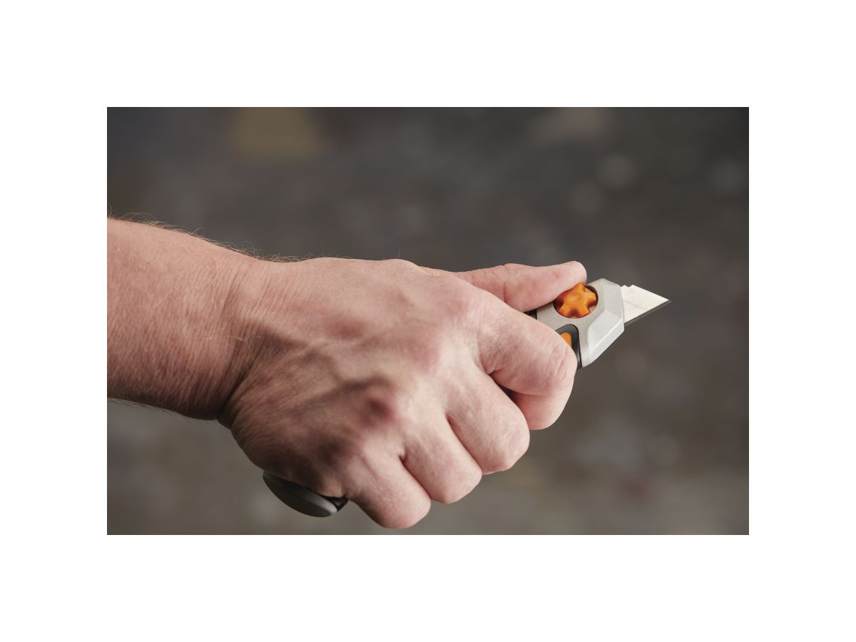 Лезвие зубчатого ножа Fiskars CarbonMaxT заменяется спереди, поэтому вам не нужно беспокоиться о незакрепленных деталях, а замена лезвия выполняется быстро и легко. Встроенный прерыватель лезвий безопасно обрезает лезвие и хранит использованные лезвия, чтобы они не представляли опасности во время работы.