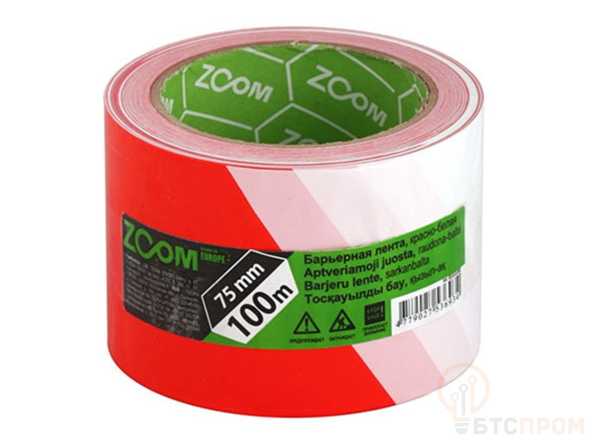 Лента оградительная 75ммх100м ZOOM, красно-белая (35 мкм полипропиленовая пленка) 02-5-5-002 фото в каталоге от BTSprom.by