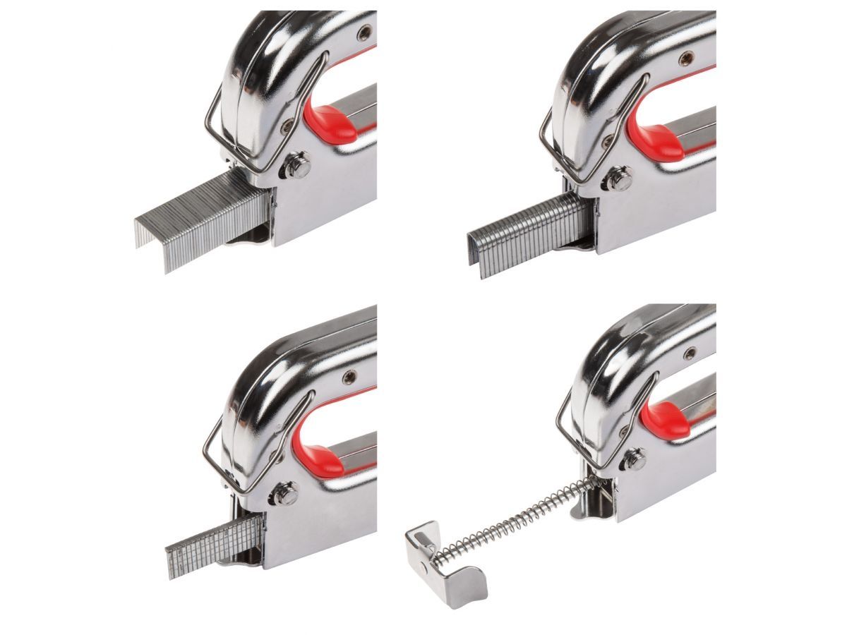 Назначение: Пистолет используется для быстрого закрепления проволочной сетки, кабеля, обивки мебели и других видов работ в мастерских, дома и в саду;