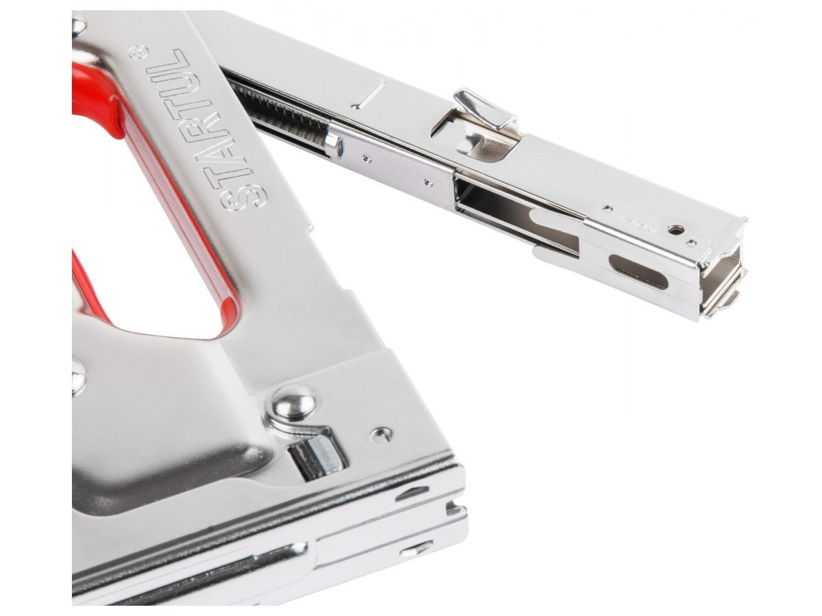 Тип скоб: Используется с двумя типами скоб (прямоугольными тип 53 4-14 мм, кабельными тип 28 10-12 мм), а также гвоздями 10-14 мм (Т-образные) и штифтами 14 мм.;