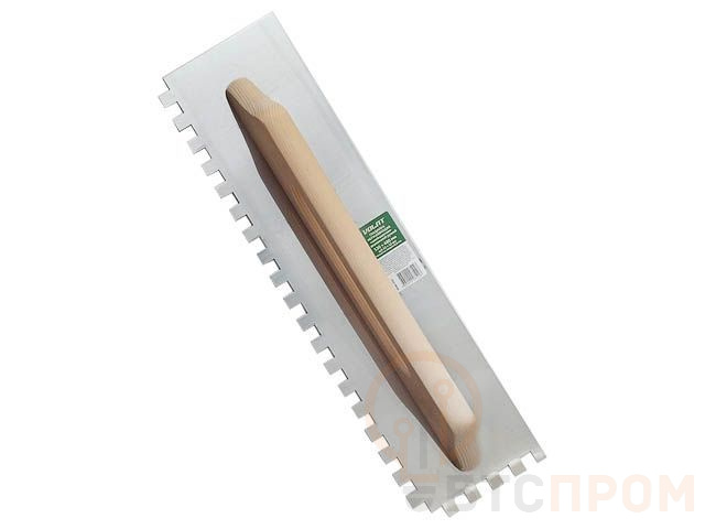 Гладилка швейц.нерж.с дер.ручкой 130х480мм зуб 8x8мм ВОЛАТ (для нанесения клея плиточного, клея для блоков, гребенка) 28100-1308