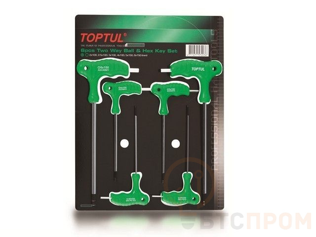 Набор ключей шестигранных L-Type TOPTUL состоит из 6 инструментов Г-образной формы с разнодлинными сторонами, предназначенных для откручивания и закручивания болтов с внутренним шестигранником размером 2, 2.5, 3, 4, 5 и 6 мм. Шарообразный наконечник на длинной стороне каждого ключа позволяет вставлять инструмент в шестигранник под углом к болту. Каждый ключ имеет удобную прорезиненную ручку, исключающую выскальзывание инструмента. Рекомендуется для профессионального использования.