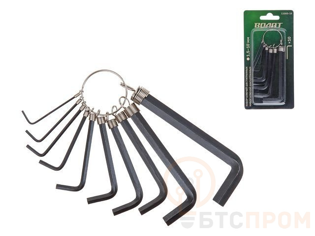 Размеры ключей в комплекте, мм: 1,5-2-2,5-3-4-5-5,5-6-8-10;