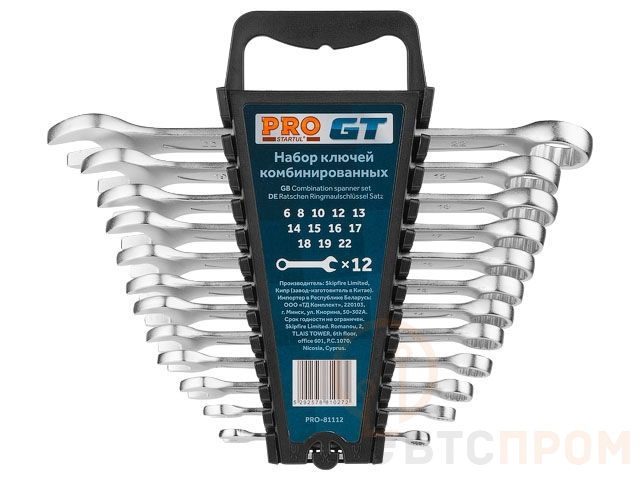 Набор ключей комбинир. 6-22мм 12шт PRO STARTUL GT (PRO-81112) (пласт. подвес, 6,8,10,12-19,22) PRO-81112