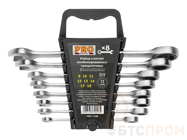 Набор ключей комбинир. 8-19мм 8шт трещоточных PRO STARTUL (PRO-7108) (сатинированное покрытие, 72 зуба) PRO-7108