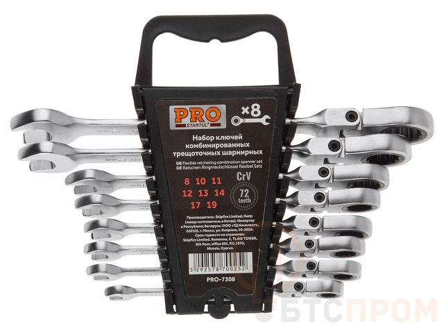 Размеры ключей в комплекте, мм: 8-10-11-12-13-14-17-19;