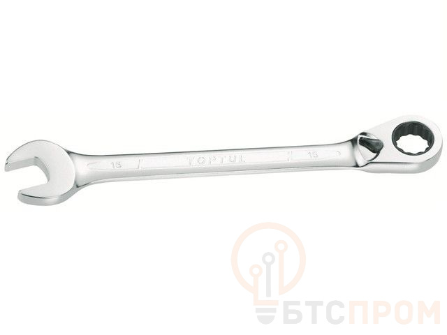 Оба окончания ключа имеют смещение 15° по отношению к рукоятке. Механизм: способен работать как на зажим, так и на отворорот (имеет переключатель)