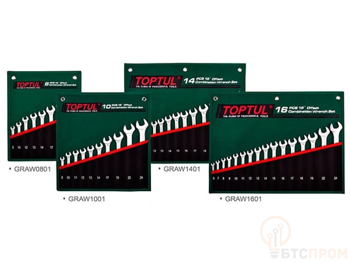 Набор ключей комбинир. 8-24 мм 15° Pro-Line 14 шт в сумке (цвет: зелёный) TOPTUL GRAW1401 фото в каталоге от BTSprom.by