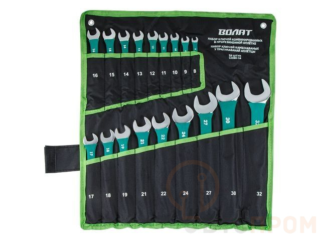 В набор входят ключи следующих размеров: 8, 9, 10, 11, 12, 13, 14, 15, 16, 17, 18, 19, 21, 22, 24, 27, 30, 32 мм;