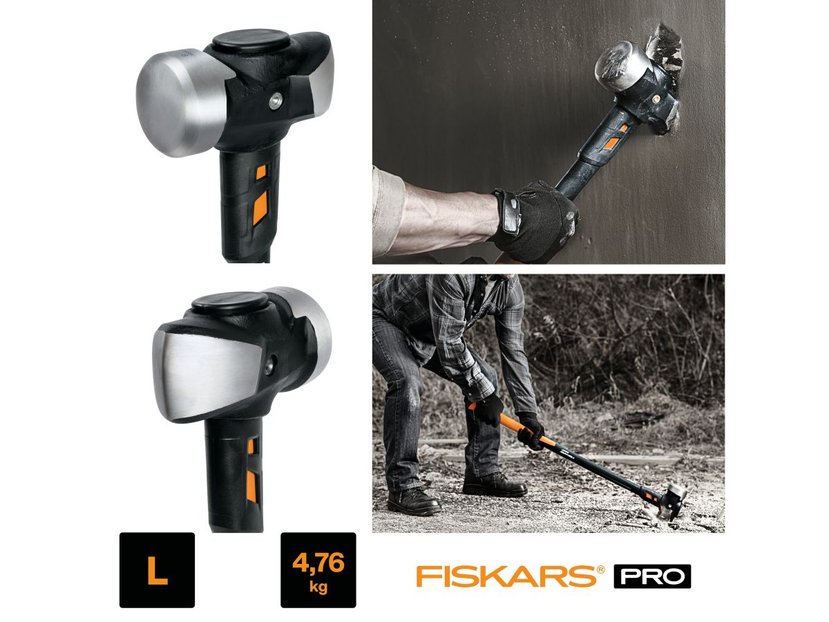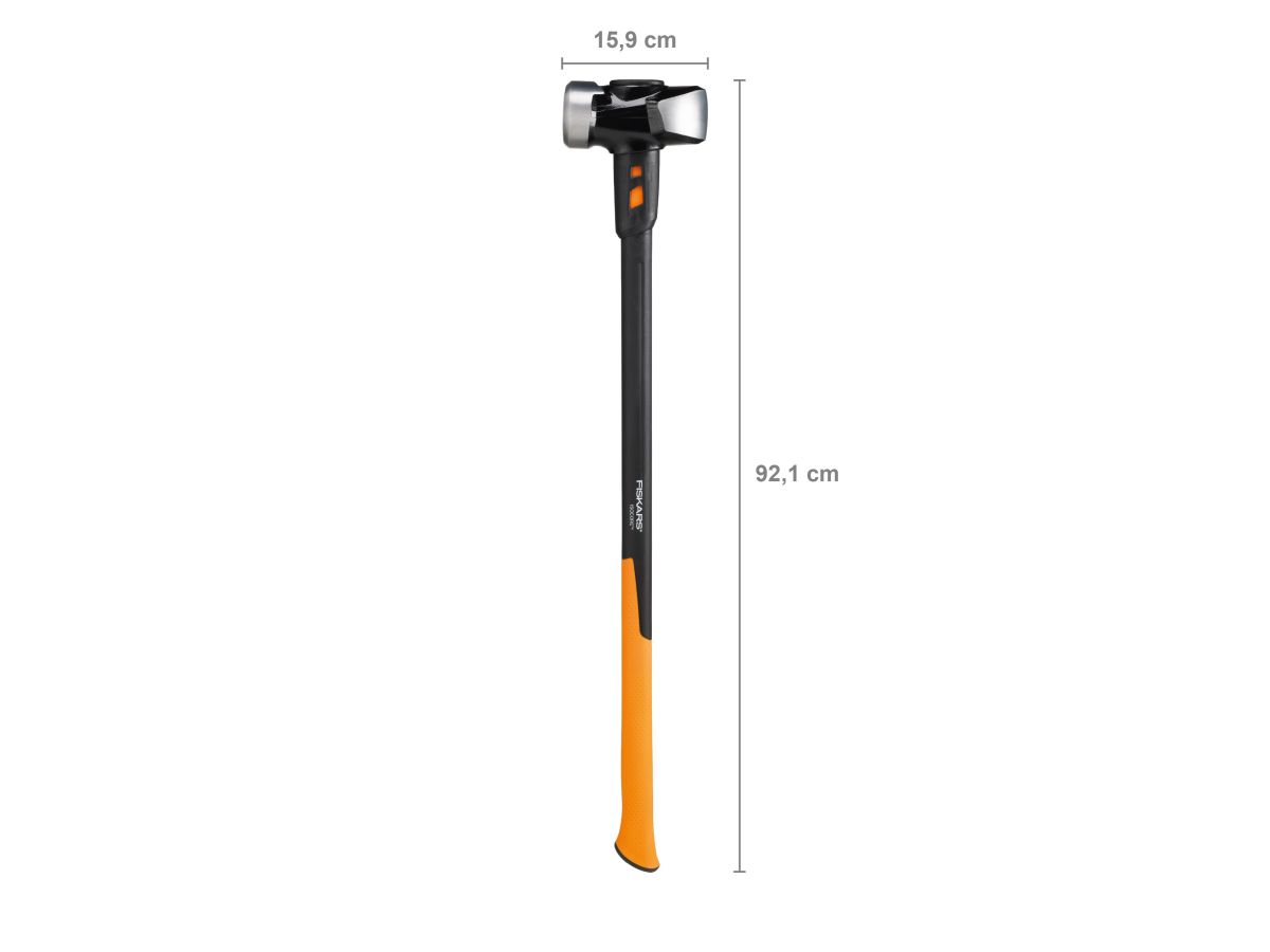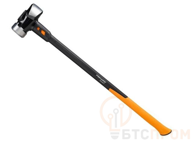 Особого внимания заслуживает рукоятка. Она представляет собой комбинацию стального стержня и армированного стекловолокном полиамида. Стальная конструкция предохраняет от травмирования во время отдачи от инструмента. Стальная основа выступает препятствием передачи вибраций, поэтому пользователь ощущает до 70% меньше усталости. Забивное устройство изготовлено из высококлассной стали и не подвергается влиянию коррозии. Вы сможете использовать две рабочие поверхности для максимальной результативности работы. Рукоятка кувалды Fiskars XL оснащена амортизирующим и противоскользящим материалом SoftGrip. Данный способ покрытия оберегает пользователя инструмента от возможного выскальзывания и получения травмы.
