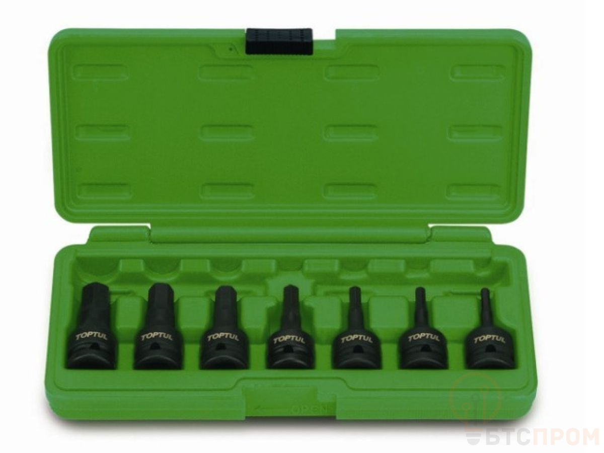 Набор ударных головок Toptul изготовлен из высококачественных материалов, способных выдерживать большие нагрузки, что обеспечивает надежность и долговечность.
